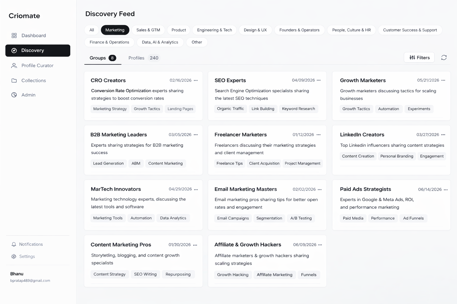 Criomate lets you turn LinkedIn into a structured research system by organizing posts, tracking creators, and curating a focused feed.